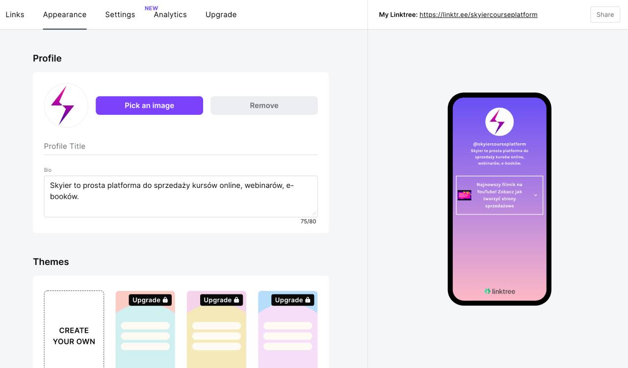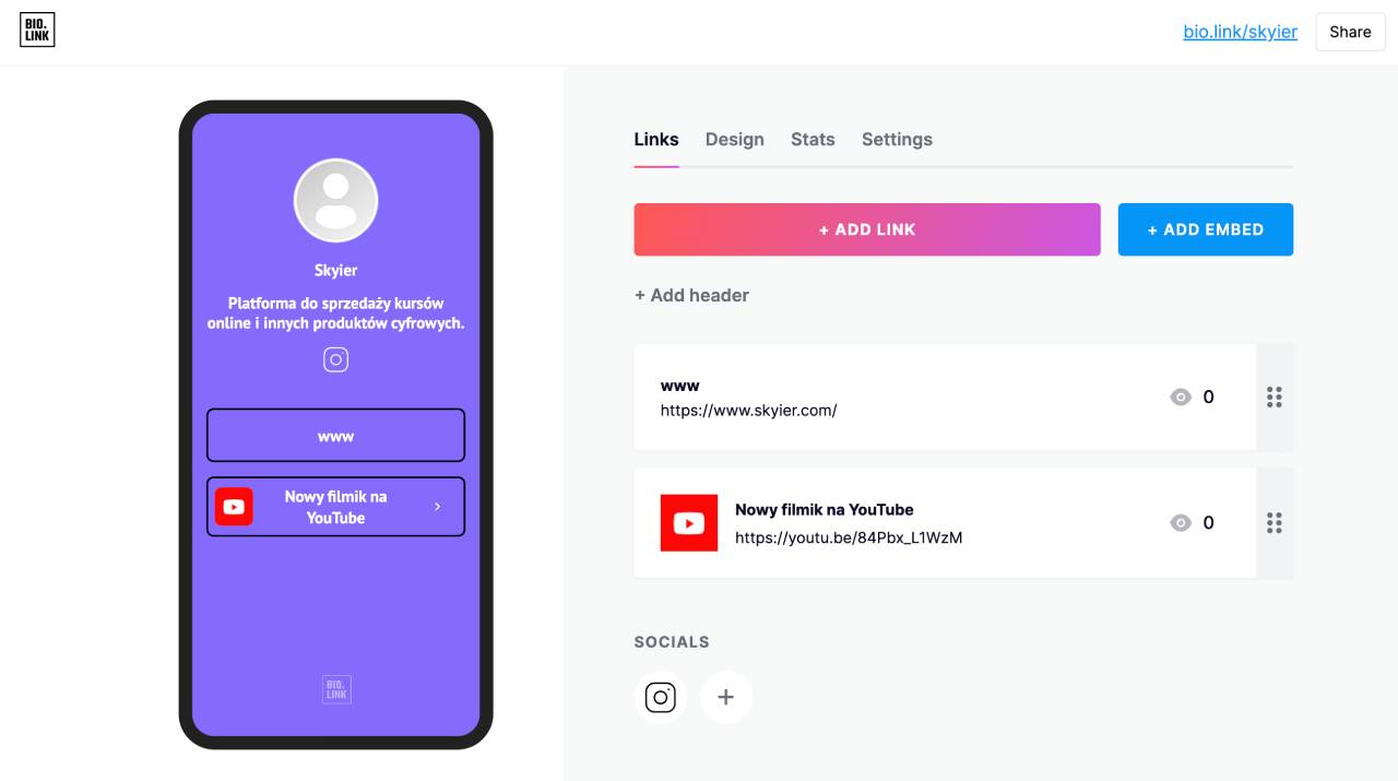 I ten właśnie link dodajesz do sekcji BIO na Instagramie, Twitterze czy TikToku.