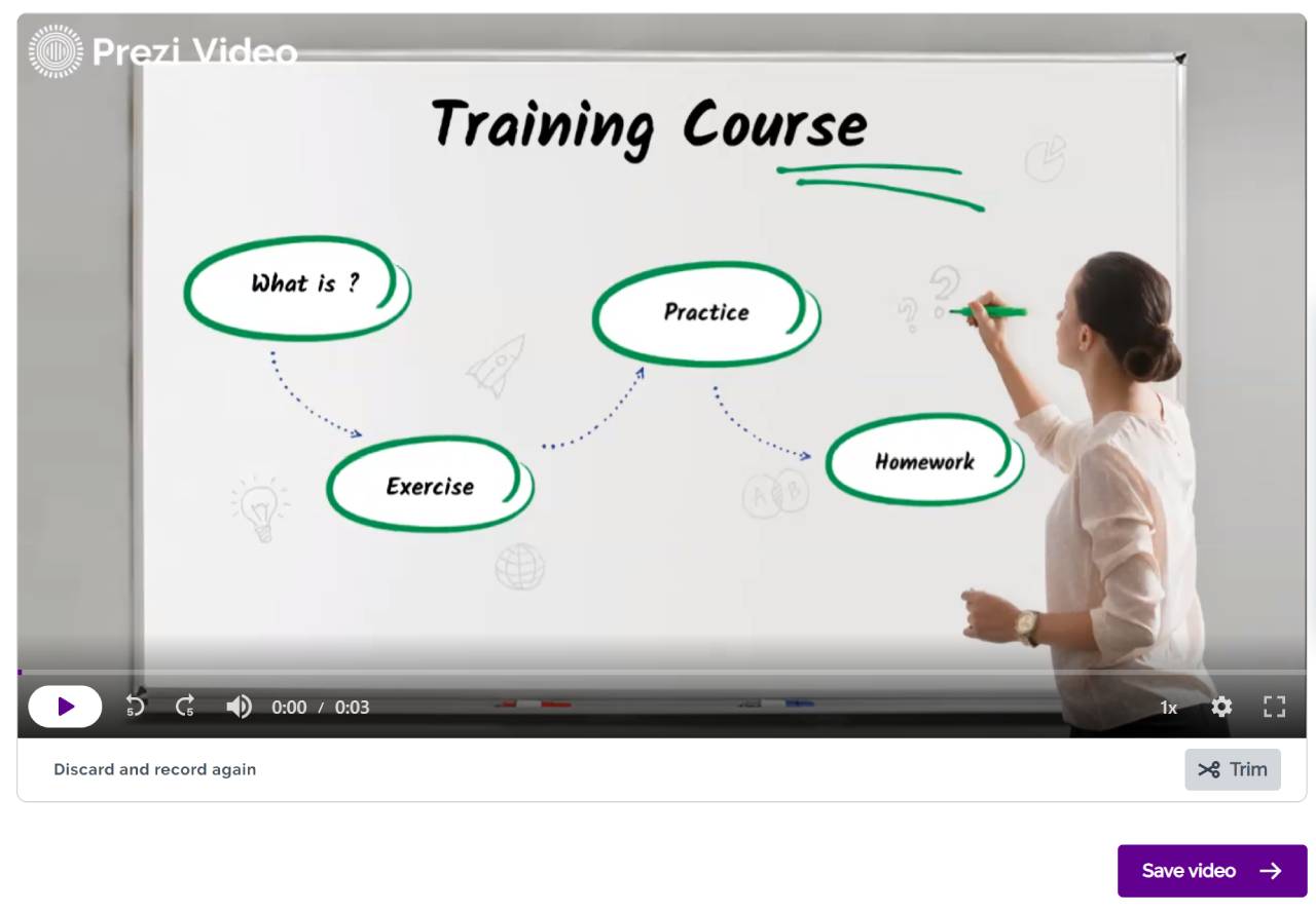 Krok 6. Po zakończeniu wybierz Done record. Prezi oferuje wbudowaną opcję Trim, która pozwala uciąć nagranie z przodu i tyłu.