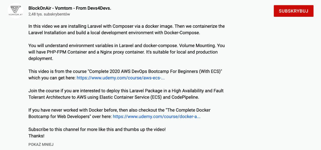 Niektórzy twórcy podają link wyłącznie do strony sprzedażowej kursu online. Działa tak między innymi twórca kanału BlockOnAir. Jego strategią jest wstawianie linków w opisach wideo. Filmów będących 1:1 lekcjami pochodzącymi z kursu. W tym wypadku, jeśli użytkownik chce dowiedzieć się czegoś więcej na temat danego zagadnienia musi po prostu kupić kurs.
