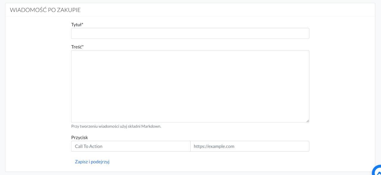 KROK 3. Wpisać treść wiadomości, jaką uczestnik otrzymają po zakupie