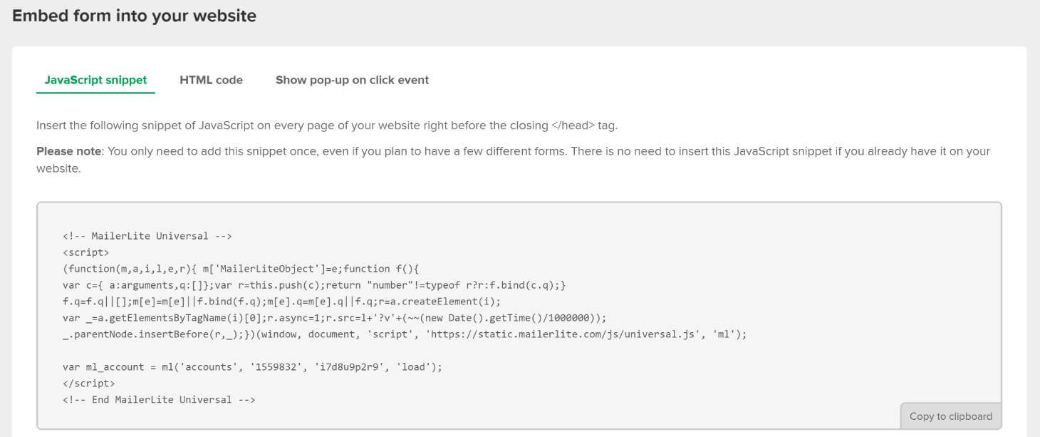 Krok 1. Wybieramy w Mailerlite opcję Forms, a następnie klikamy przycisk Create embedded form.