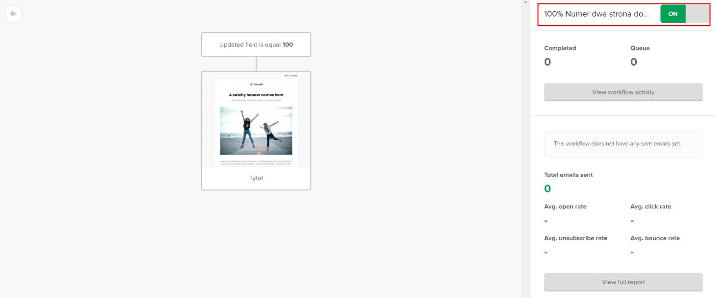 Założenie 2: Chcesz wysłać mail z gratulacjami dla osób, które ukończyły 100% kursu.