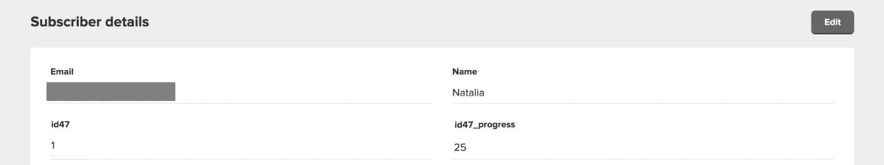 Ale to nie wszystko. Bo również informacja na temat % postępu wysyłana jest bezpośrednio do systemu mailingowego twórcy. A aktualizacja tych danych w systemie odbywa się niemal natychmiast. Czyli, jeśli student X właśnie w tym momencie zmienił swój progress z 50% na 60% to w Twoim programie mailingowym automatycznie przy tym studencie zmieni się progress na 60%.