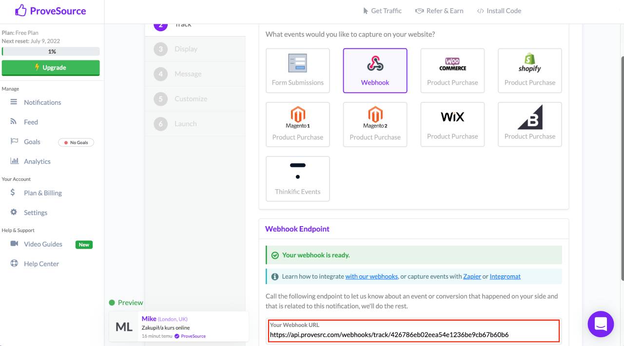 Jeśli chciałbyś wyświetlać powiadomienia o dokonanych zakupach na swojej stronie to możesz do tego wykorzystać narzędzie ProveSource i wdrożyć je w swojej platformie.